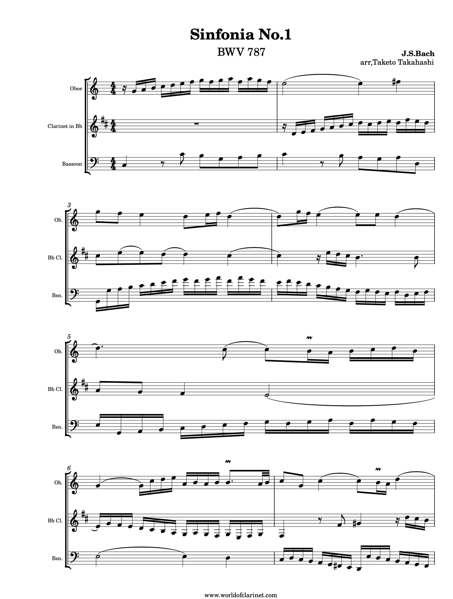 ヨハン・ゼバスティアン・バッハの『三声のシンフォニア』第6番~第10番(BWV 792–796)を、トリオ・ダンシュ(オーボエ・クラリネット・ファゴットの三重奏)用に編曲した作品です。原曲の3声の対位法的な構造を生かしながら、アンサンブルに適した響きにアレンジされており、独立した旋律線の美しさを保ちつつ、親しみやすく演奏できる編曲となっています。